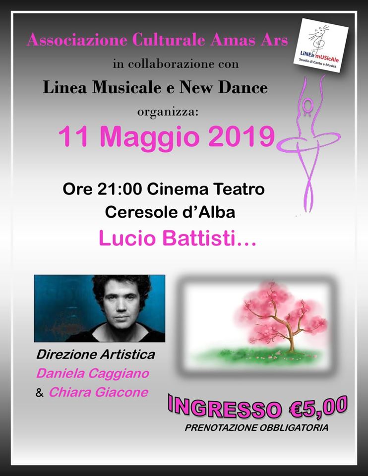 Si terrà sabato 11 maggio alle ore 21 presso il Cinema Parrocchiale di Ceresole d'Alba una serata musicale che avrà per protagonista Lucio Battisti e le sue canzoni.