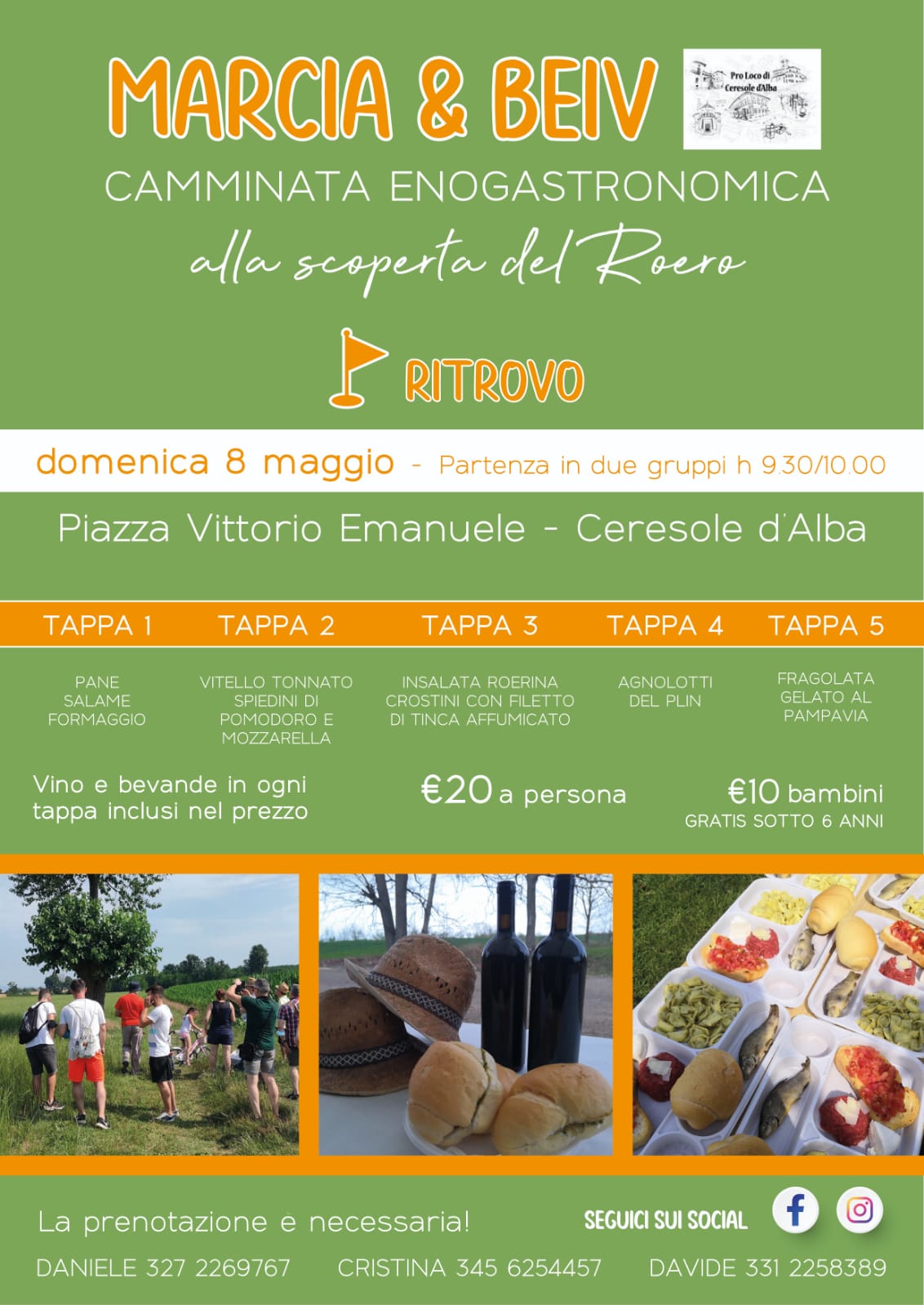 La Proloco di Ceresole d'Alba organizza per DOMENICA 15 MAGGIO una camminata enogastronomica sui Sentieri delle Peschiere: MARCIA & BEIV alla scoperta del Roero. La cammina a tappe partirà dal centro paese per lambire le colline del Roero e tornare nelle nostre #terrerosse. Il percorso è di circa 12 km.