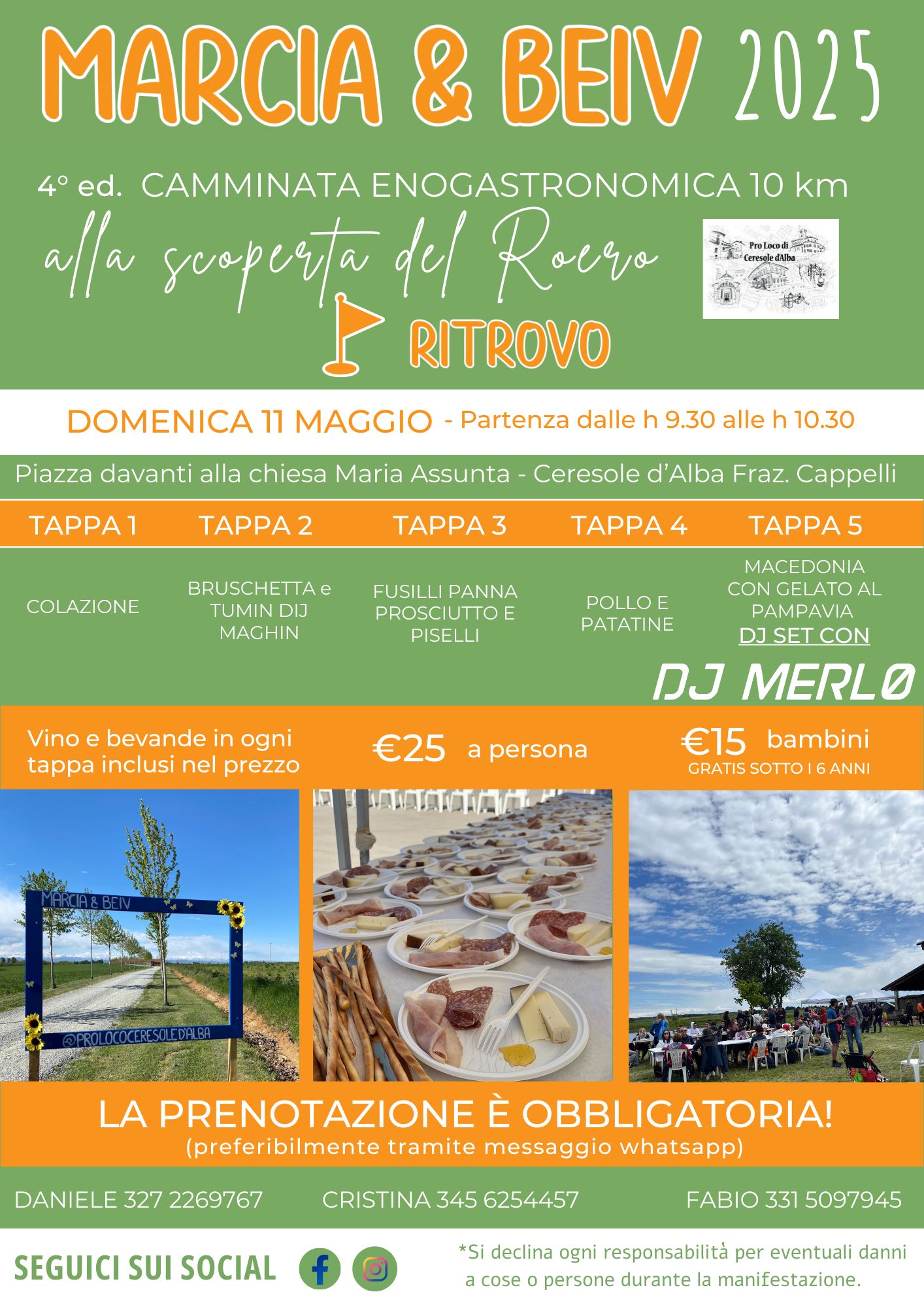 La Pro Loco di Ceresole d'Alba organizza per domenica 11 maggio la quarta edizione della "Marcia e beiv", camminata enogastronomica alla scoperta del Roero.