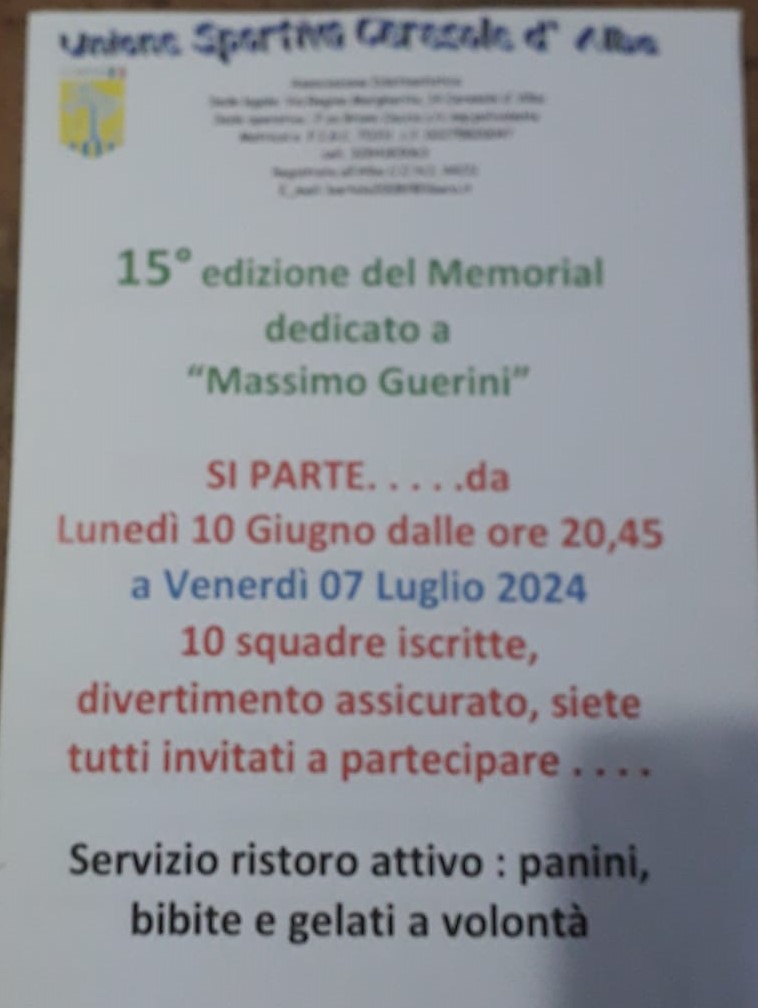 Anche quest'anno si terrà il torneo di calcetto "Massimo Guerini", in ricordo del carabiniere ucciso durante una rapina a Ceresole, organizzato dall'Unione Sportiva.