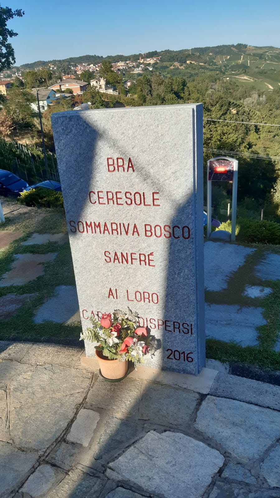 E’ l’area dei piloni di Montà, sormontata da quella Croce Luminosa che da oltre 60 anni è un luogo di memoria per diversi paesi del Roero, della Langa, dell’Albese e del Braidese. Sono quasi 30 i cippi che circondano questa potente installazione: ognuno con incisi sopra i nomi dei propri Caduti.