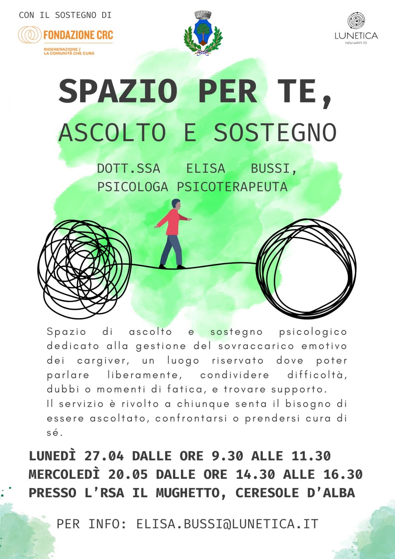Per ulteriori informazioni è possibile contattare: elisa.bussi@lunetica.it